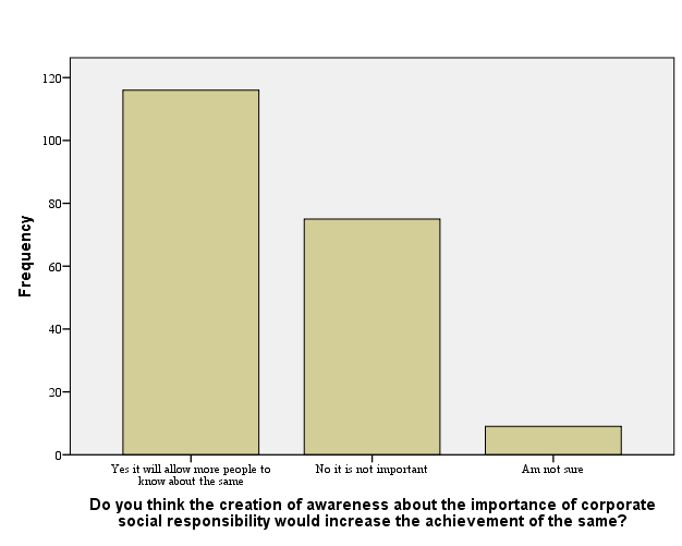 - Do you the creation of awareness about the importance of corporate social responsibility would increase the achievement of the same?